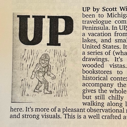 The new issue of Comics Blogger (n.15) includes a review of UP, as well as dozens of pages of short interviews from Destination Dealers Con and a long interview with Sammy Harkham. Go get it!